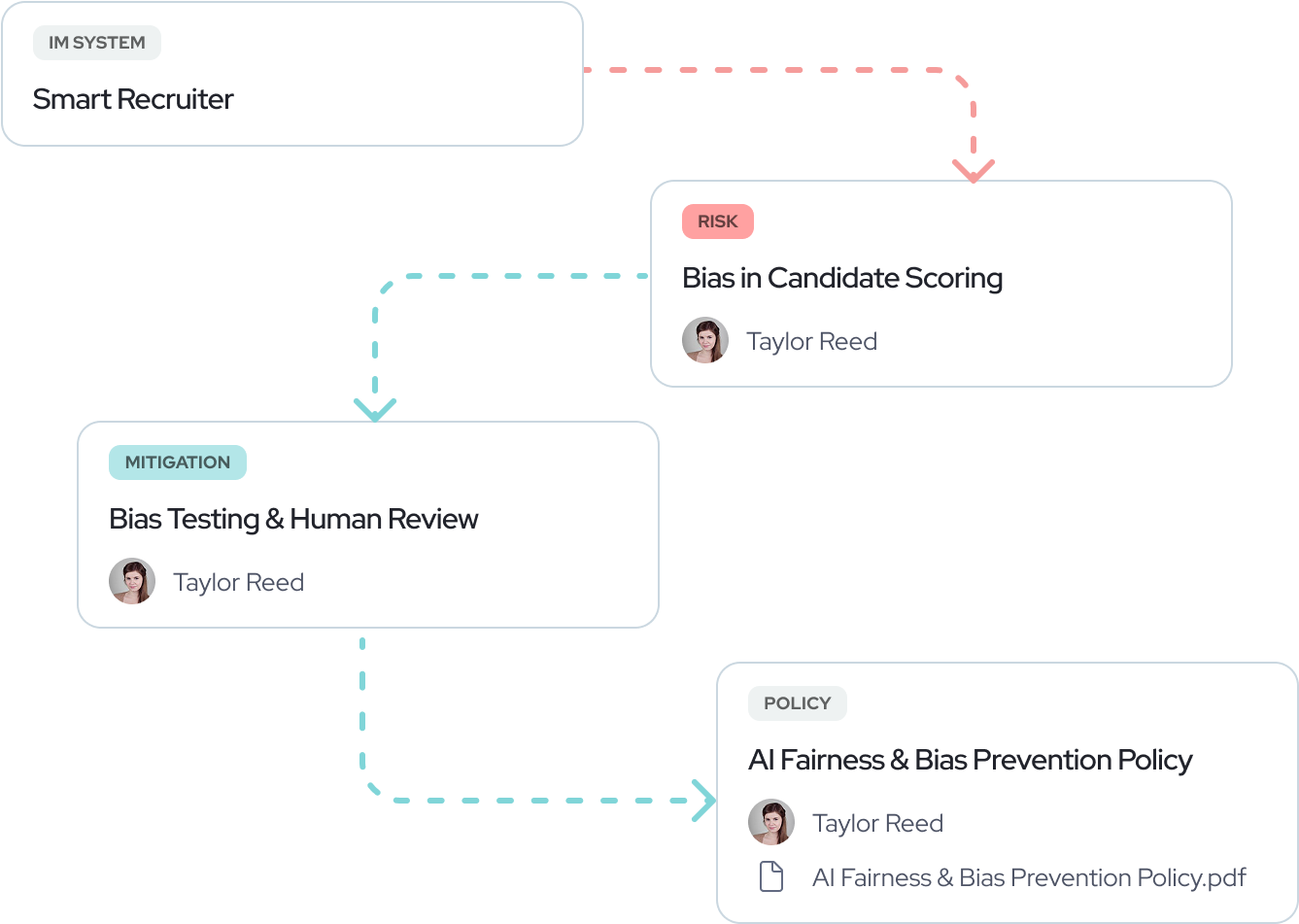 Use Mitigations to connect specific risks to the right Policies, Procedures, and more. Everything’s mapped, traceable, and ready to demonstrate your AI governance in action.